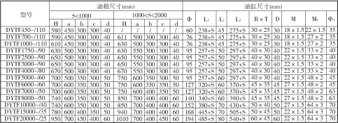 DYTF型分离式电液推杆油箱尺寸及油缸尺寸