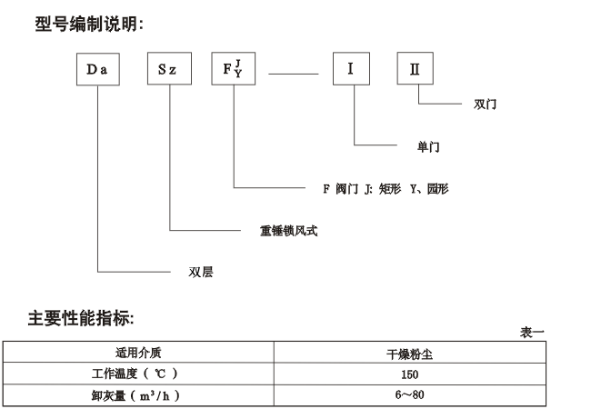 该系列阀门的阀板在物料重力作用下自动开启,物料下落后,配重杠杆系统使阀板自动复位,防止野风吹人,从而完成物料输送。
