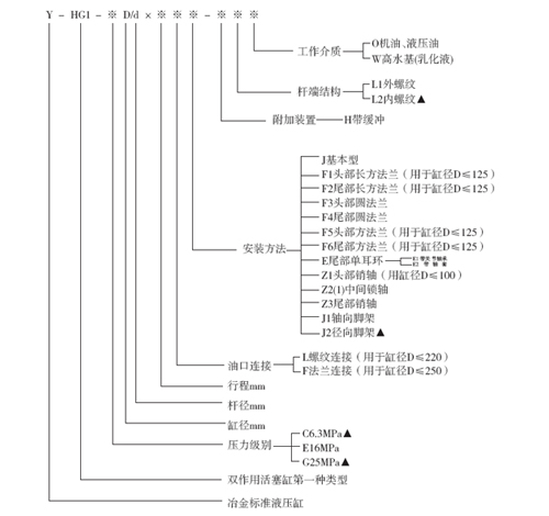 Y-HG1型冶金设备标准液压缸技术规格