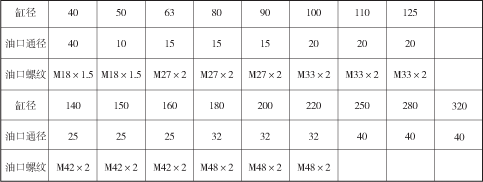 注:1、此油口尺寸根据活塞油口最高流速V6取5m/sec而定。