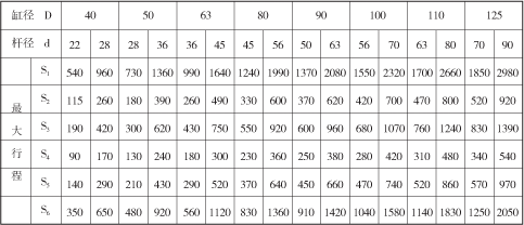 表1 缸径D、杆径d系列