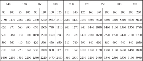 注:表中数字是按稳定性计算的最大行程,超出此表范围均为非标准,需设计者自行保证稳定性。